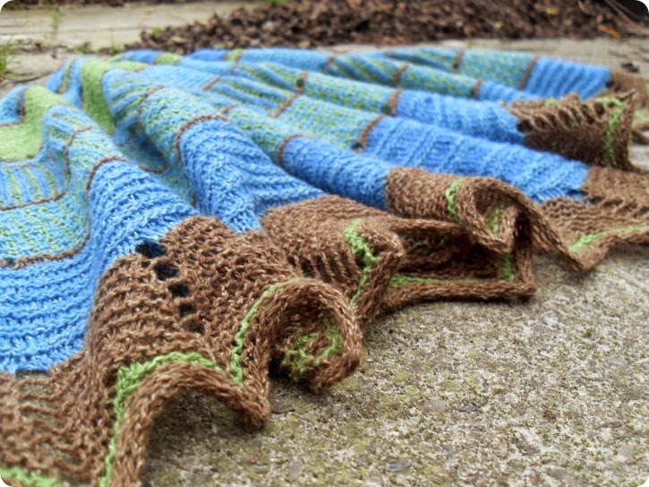 Men det har været sjovt. Og lærerigt. Og så holder jeg nok aldrig op med at synes, at det er fantastisk at se andres versioner tage form. Det er vildt så mange variationer, der kan komme af det samme mønster, blot ved forskellige farver. Det med farver er også temmelig vildt. En mærkelig samensætning kan vise sig usandsynlig smuk, mens et enkelt twist over den samme skala kan være fatal. Mange af de færdige sjaler er afsindig flotte, mens der bestemt også er nogen imellem, der ikke er det.